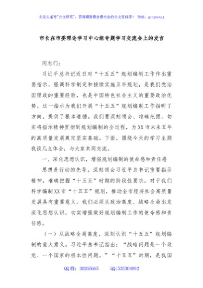 / 市长在市委理论学习中心组专题学习交流会上的发言