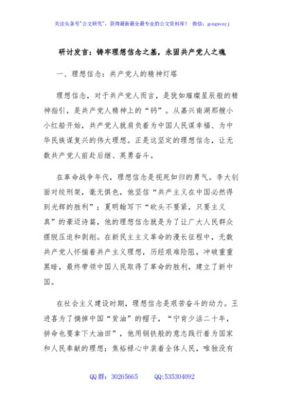 研讨发言:铸牢理想信念之基,永固共产党人之魂