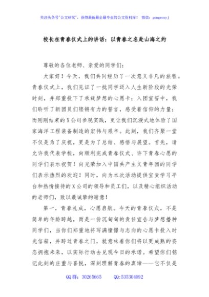 校长在青春仪式上的讲话:以青春之名赴山海之约