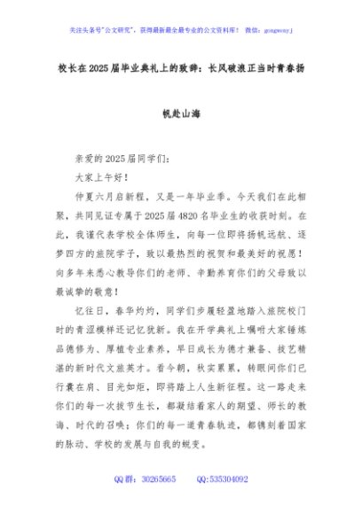 / 校长在2025届毕业典礼上的致辞:长风破浪正当时青春扬帆赴山海