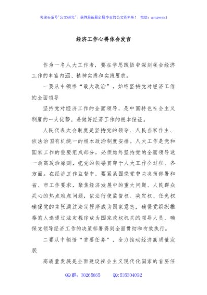 / 经济工作心得体会发言