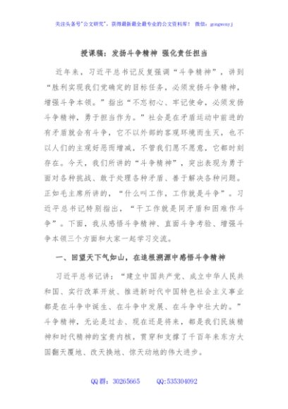 授课稿:发扬斗争精神 强化责任担当