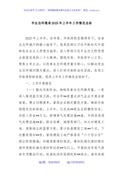 / 市生态环境局2025年上半年工作情况总结