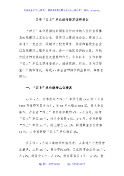 / 关于“四上”单位新增情况调研报告