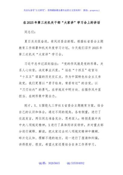 / 在2025年第三次机关干部“大家讲”学习会上的讲话