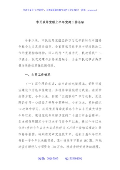 / 市民政局党组上半年党建工作总结