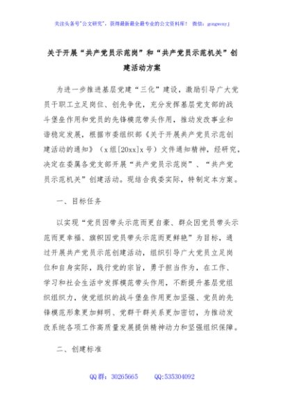 / 关于开展“共产党员示范岗”和“共产党员示范机关”创建活动方案