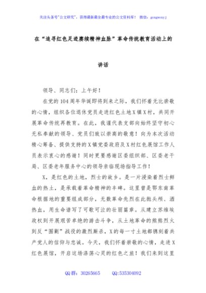 / 在“追寻红色足迹赓续精神血脉”革命传统教育活动上的讲话