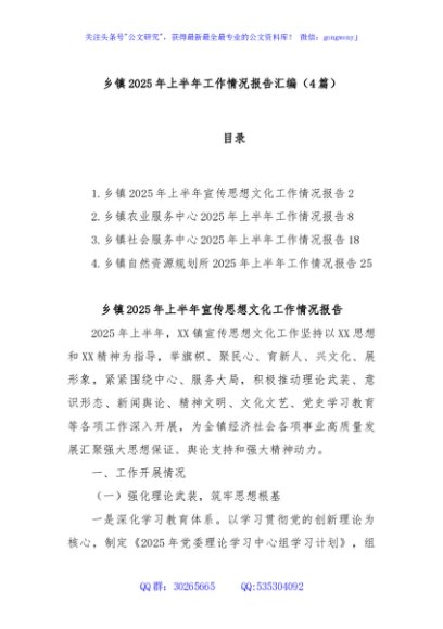 / (4篇)乡镇2025年上半年工作情况报告汇编