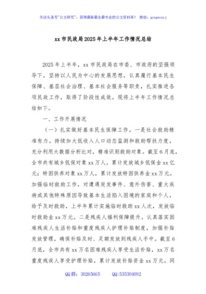 / xx市民政局2025年上半年工作情况总结