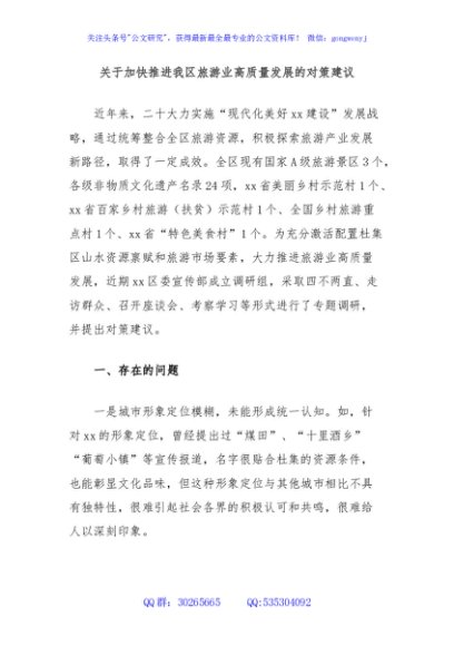 / 关于加快推进我区旅游业高质量发展的对策建议