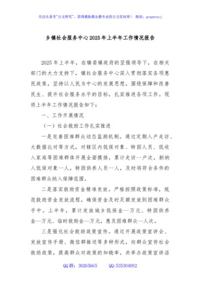 / 乡镇社会服务中心2025年上半年工作情况报告