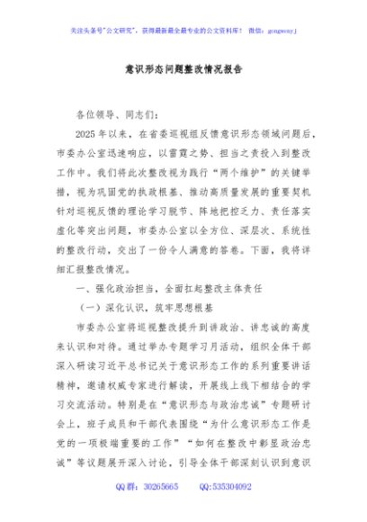 / 意识形态问题整改情况报告