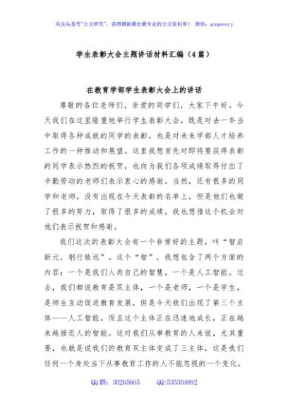 / (4篇)学生表彰大会主题讲话材料汇编