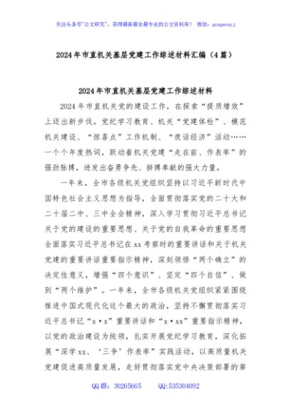 / (4篇)2024年市直机关基层党建工作综述材料汇编