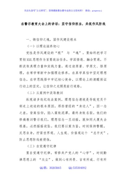 / 在警示教育大会上的讲话:坚守信仰担当,共筑作风防线