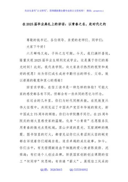 / 在2025届毕业典礼上的讲话:以青春之名,赴时代之约