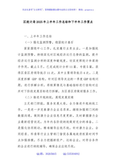 / 区统计局2025年上半年工作总结和下半年工作要点