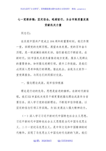 / 七一党课讲稿:坚定信念,砥砺前行,为全市高质量发展贡献机关力量