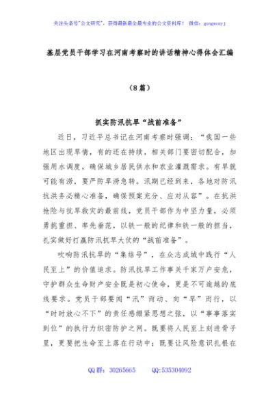 / (8篇)基层党员干部学习在河南考察时的讲话精神心得体会汇编