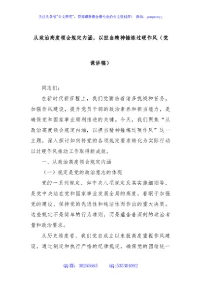 从政治高度领会规定内涵,以担当精神锤炼过硬作风(党课讲稿)