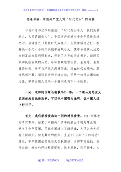 / 党课讲稿:中国共产党人对“时代之问”的回答