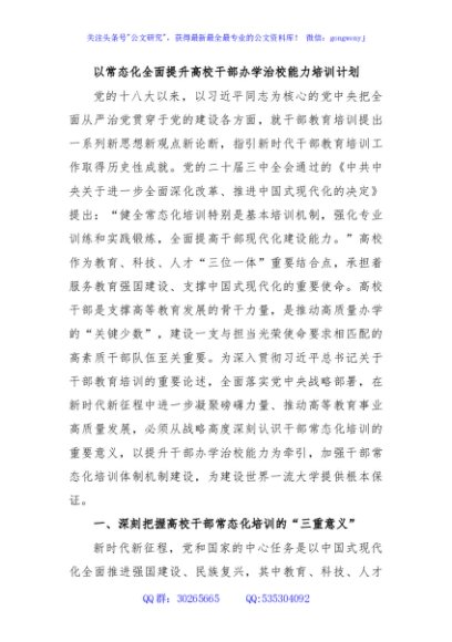 / 以常态化全面提升高校干部办学治校能力培训计划