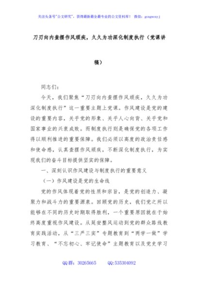 / 刀刃向内查摆作风顽疾,久久为功深化制度执行(党课讲稿)