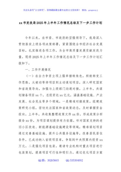 / xx市发改局2025年上半年工作情况总结及下一步工作计划