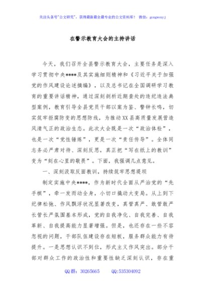 / 在警示教育大会的主持讲话