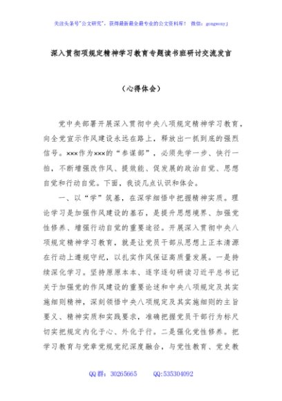 / 深入贯彻项规定精神学习教育专题读书班研讨交流发言(心得体会)