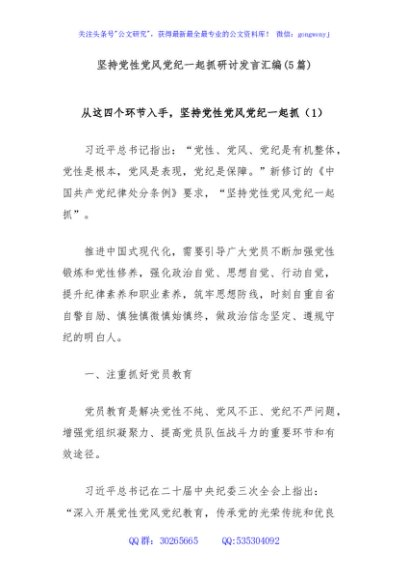 / (5篇)坚持党性党风党纪一起抓研讨发言汇编
