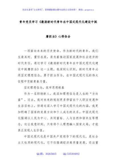 / 青年党员学习《激励新时代青年在中国式现代化建设中挺膺担当》心得体会