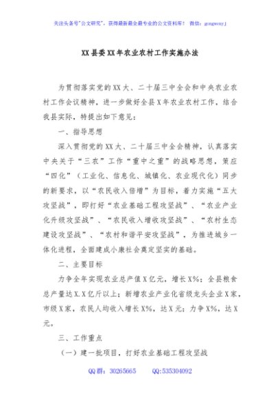 / XX县委XX年农业农村工作实施办法