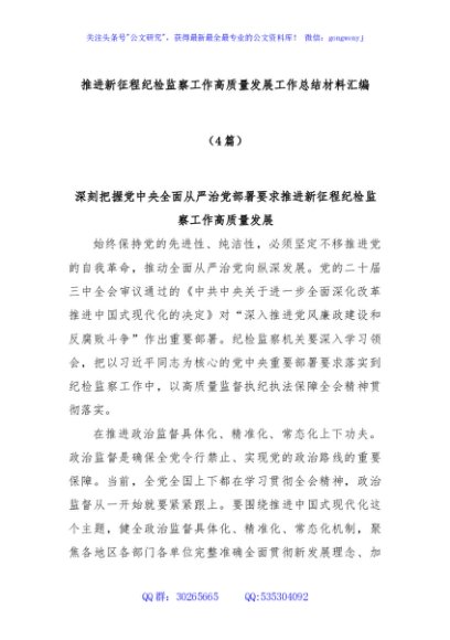 / (4篇)推进新征程纪检监察工作高质量发展工作总结材料汇编