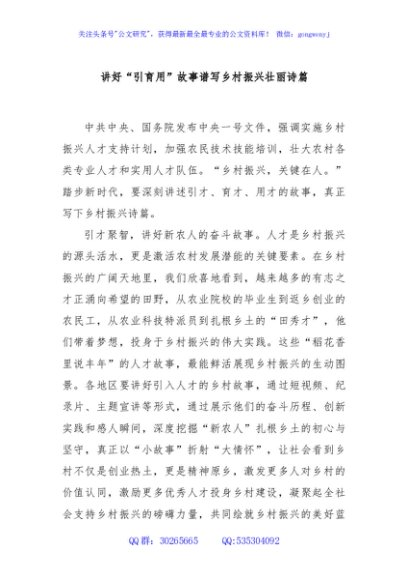 讲好“引育用”故事谱写乡村振兴壮丽诗篇