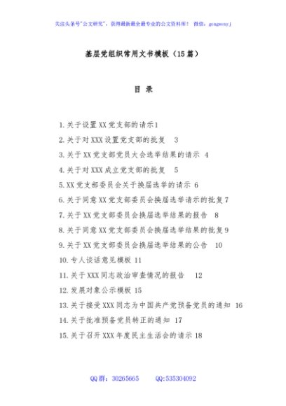 / (15篇)基层党组织常用文书模板