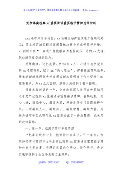 / 贯彻落实视察xx重要讲话重要指示精神总结材料