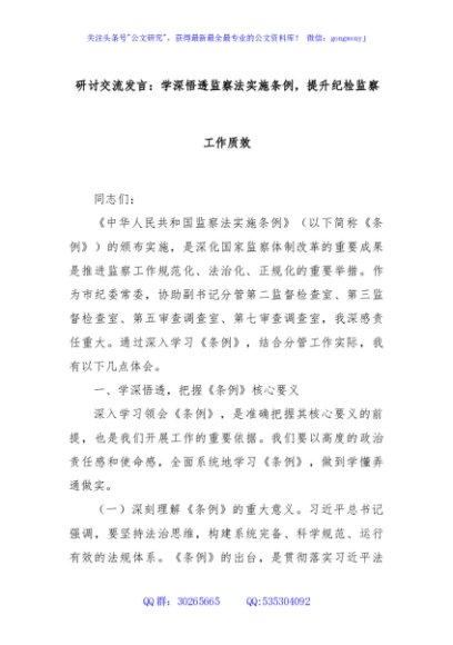 / 研讨交流发言:学深悟透监察法实施条例,提升纪检监察工作质效