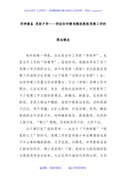 / 形神兼备 质胜于华——例谈如何精准概括提炼党建工作的理念概念