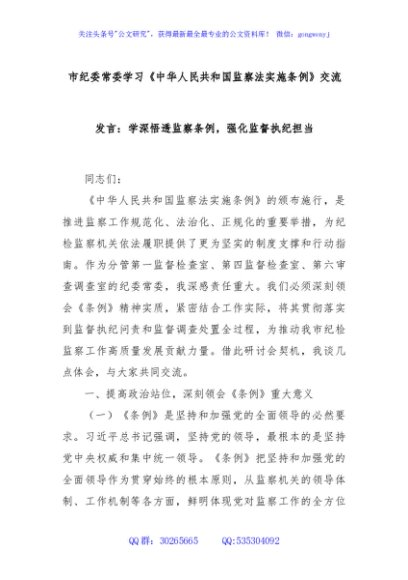 / 市纪委常委学习《中华人民共和国监察法实施条例》交流发言:学深悟透监察条例,强化监督执纪担当