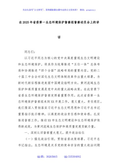 / 在2025年省委第一生态环境保护督察组督察动员会上的讲话