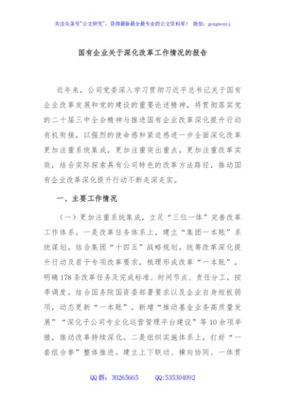 / 国有企业关于深化改革工作情况的报告