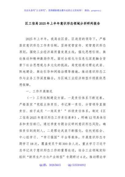 / 区工信局2025年上半年意识形态领域分析研判报告