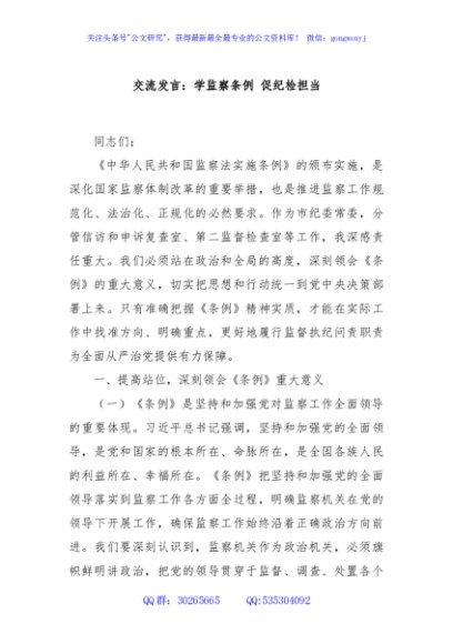 / 交流发言:学监察条例 促纪检担当