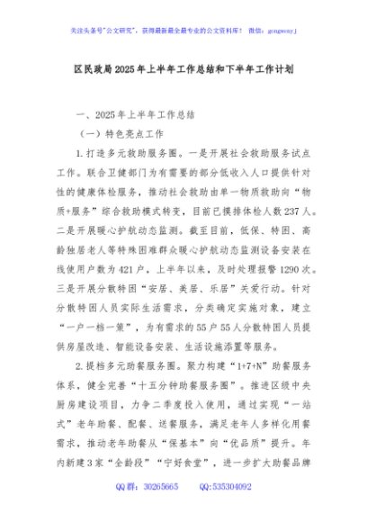 / 区民政局2025年上半年工作总结和下半年工作计划