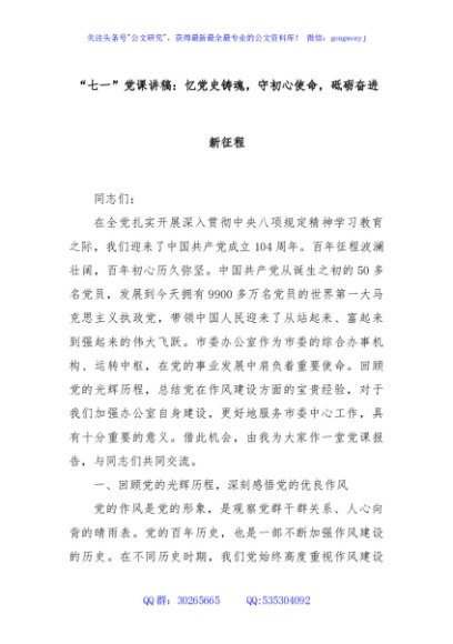 / “七一”党课讲稿:忆党史铸魂,守初心使命,砥砺奋进新征程