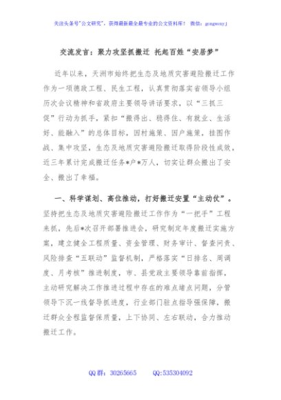 交流发言:聚力攻坚抓搬迁 托起百姓“安居梦”