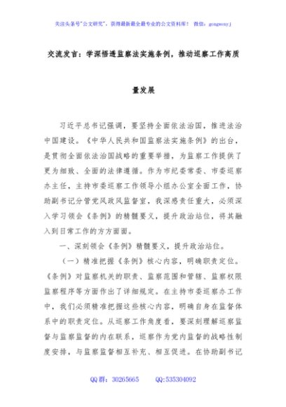 / 交流发言:学深悟透监察法实施条例,推动巡察工作高质量发展
