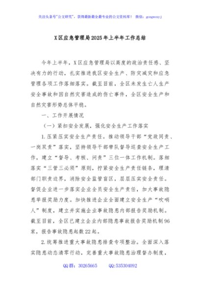 / X区应急管理局2025年上半年工作总结